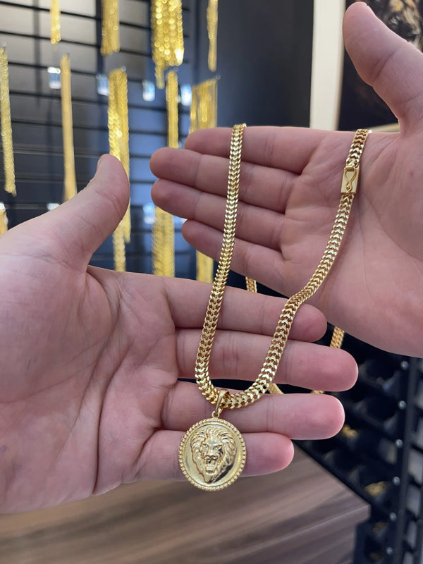 CORRENTE GRUMET DUPLA 6MM + PINGENTE LEÃO REDONDO M
