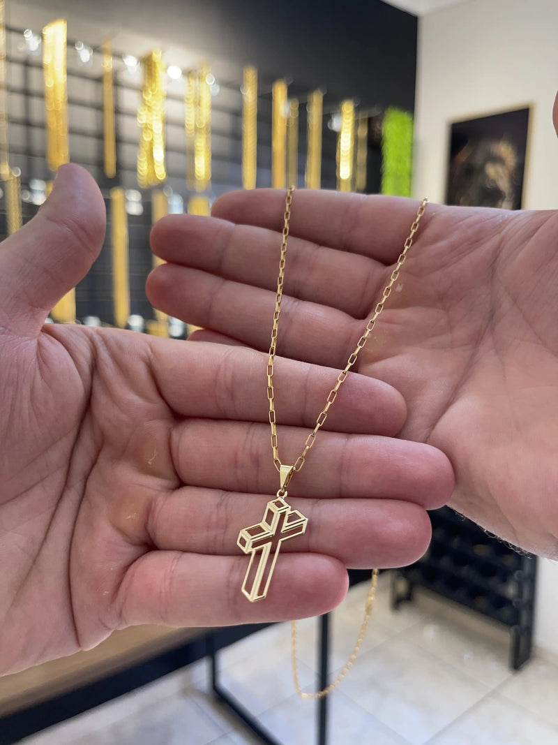 CORRENTE CARTIER 1,5MM + PINGENTE CRUZ 3D